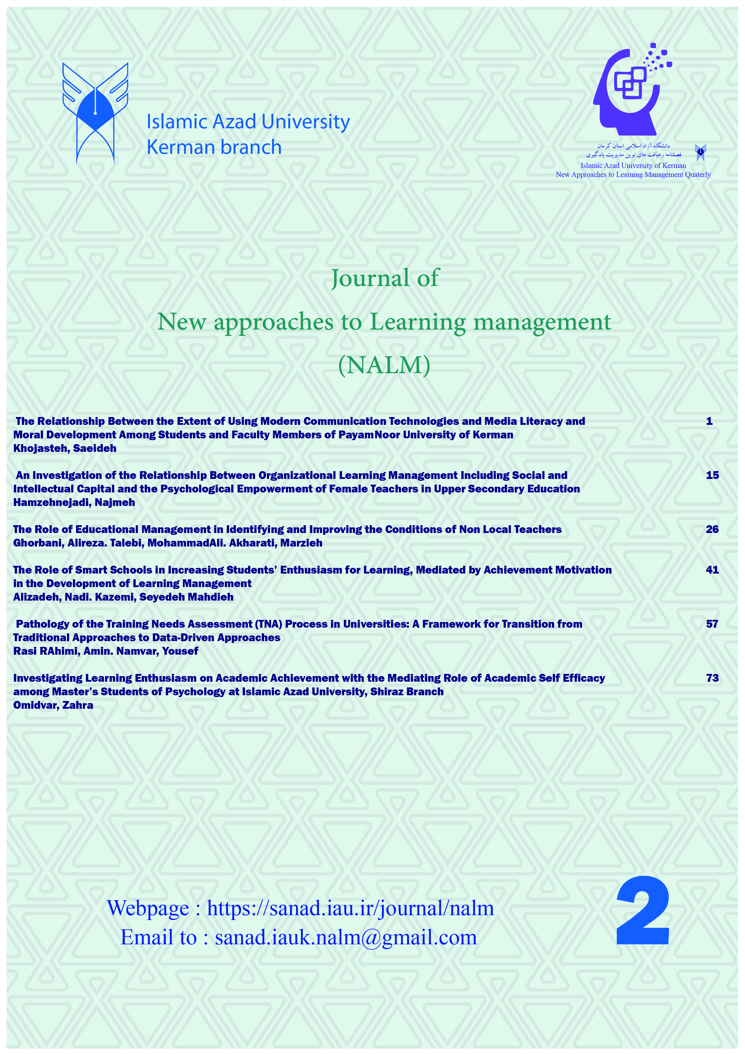 The specialized quarterly scientific journal "New Approaches to Learning Management" of Islamic Azad University, Kerman Branch, has received a publication license based on the approval of the second meeting of the Commission for Review and Approval of Scientific Journals of the Vice-Chancellor of Educational and Skill Sciences of Islamic Azad University, dated 22/08/2024